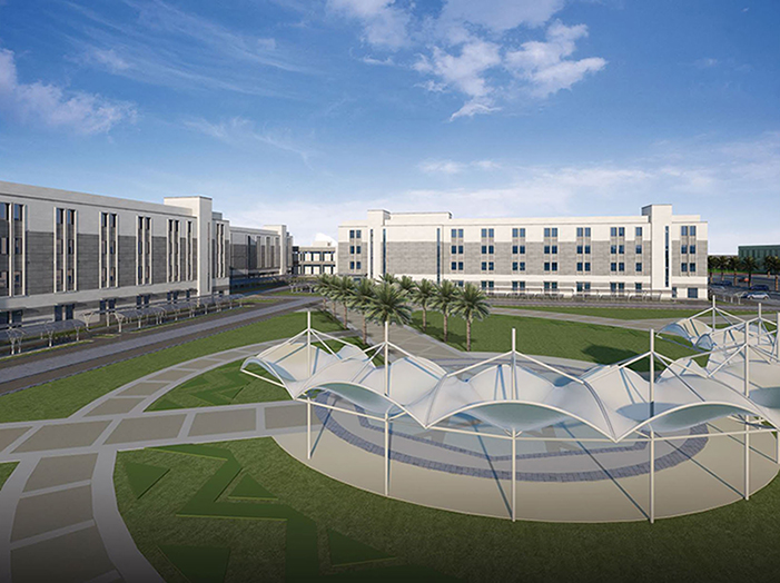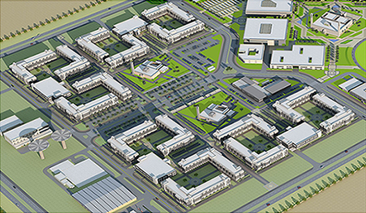 Creating a shining example in Gulf Country Council nations in the MENA region, this project intends to create accommodations for male bachelor laborers in Kuwait. It is located in the Al Jahra District of Kuwait, with an area of 447,654 m2. The goal is to provide a comfortable, clean, green, save environment for living in a self-contained city similar to a university campus. Residential accommodations are supported by mess halls with culture sensitive, shopping areas, services, athletic facilities for recreation, green areas for relaxation, mosques for prayer and meditation, health clinics, police department, banks, post offices, restaurants, laundry facilities and more. The building design style is contemporary, reflecting vernacular Kuwaiti architecture. The materials chosen and spaces created promote healthy living conditions.