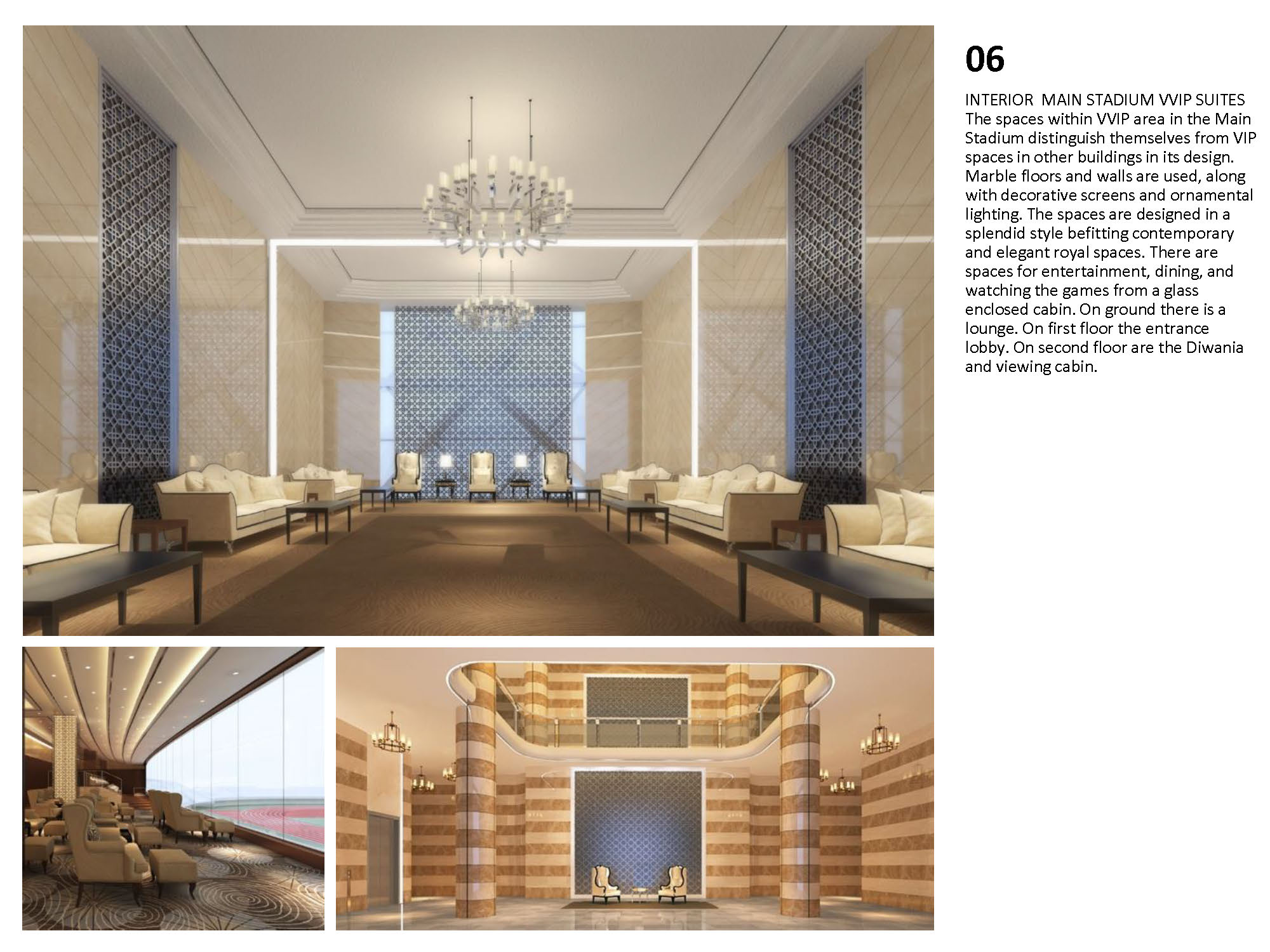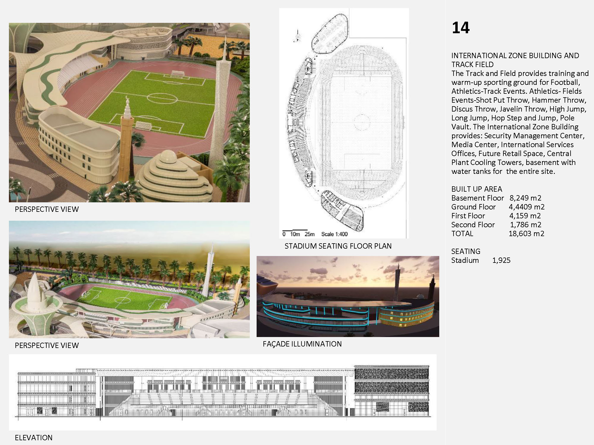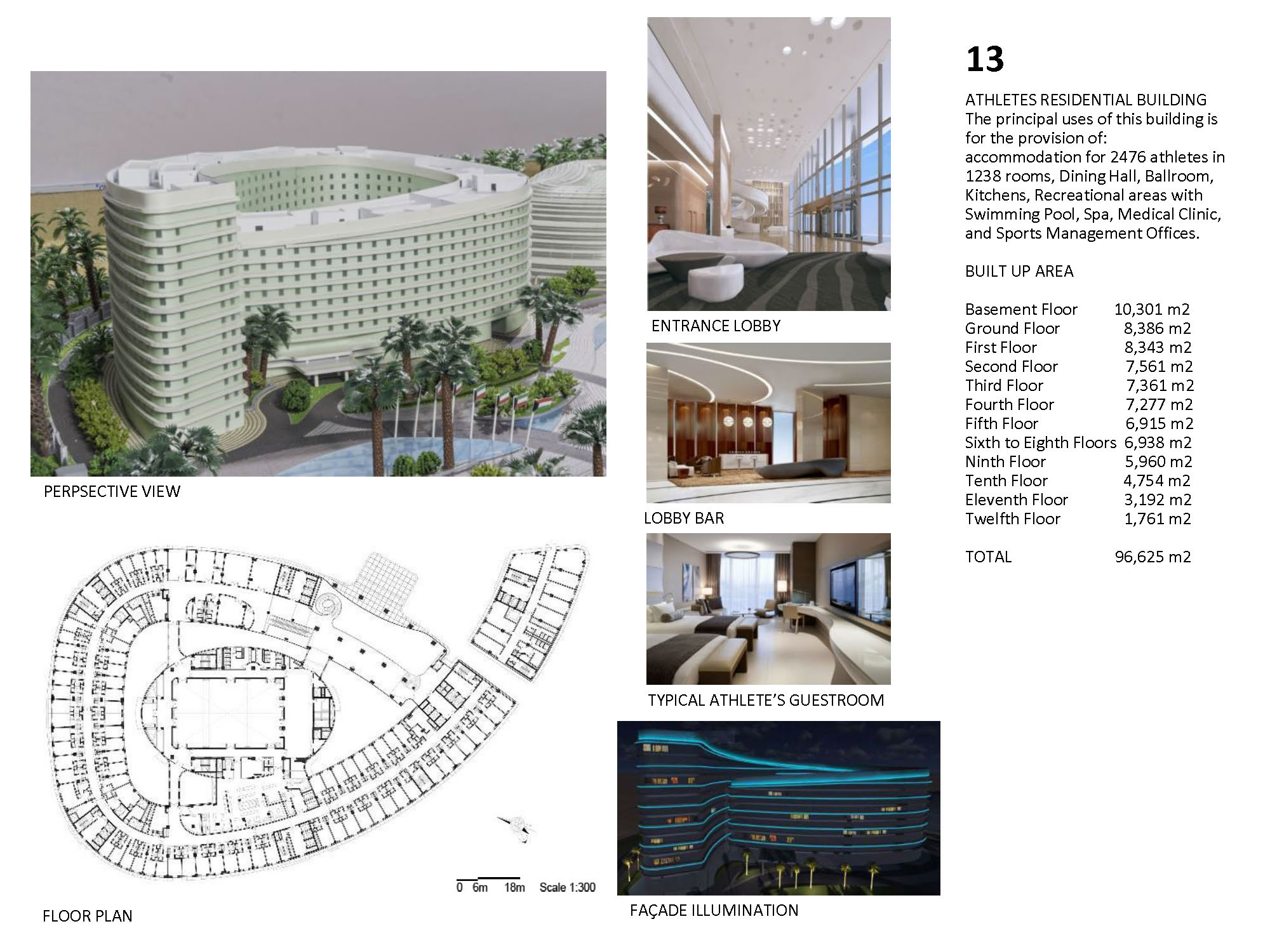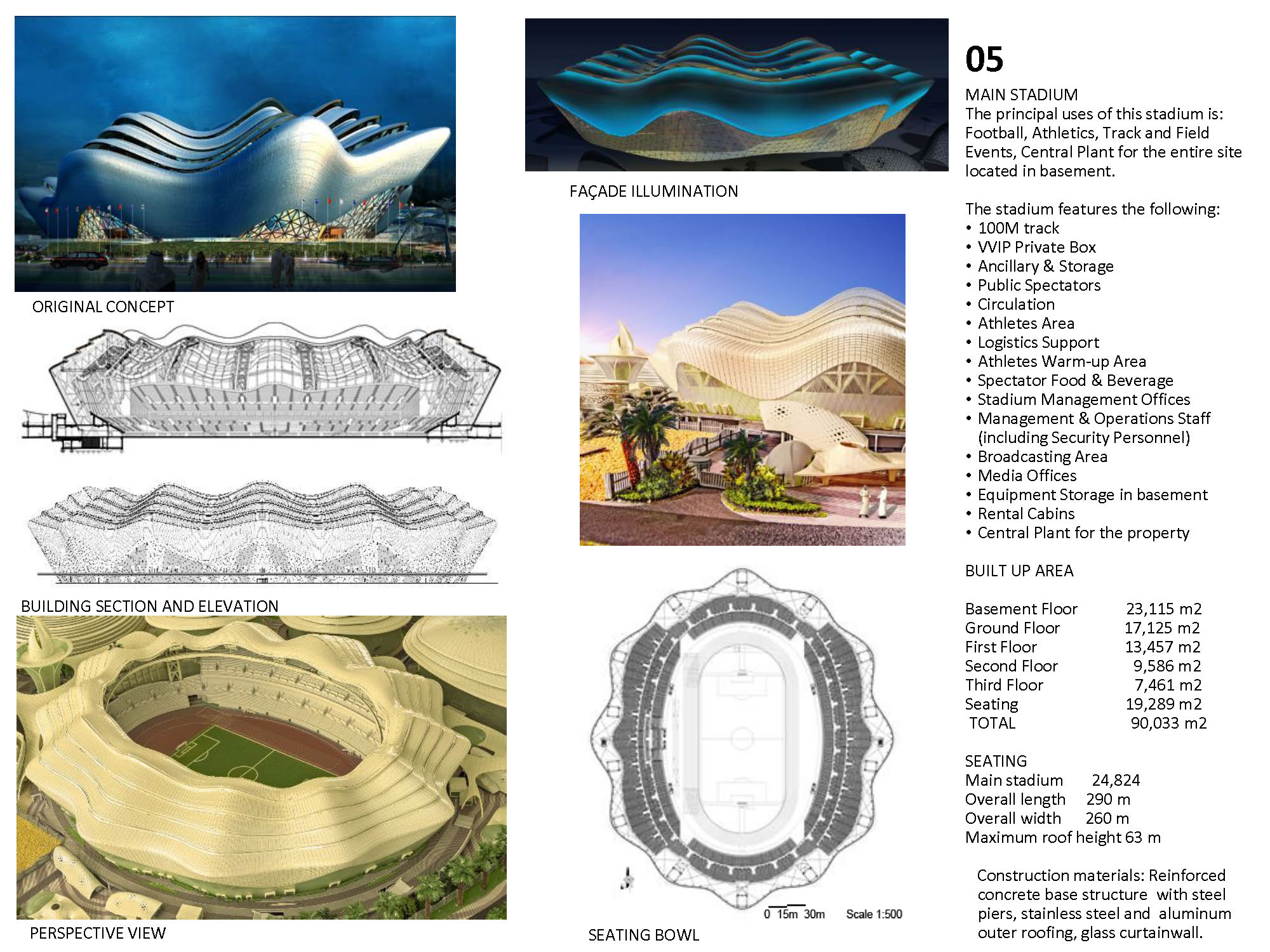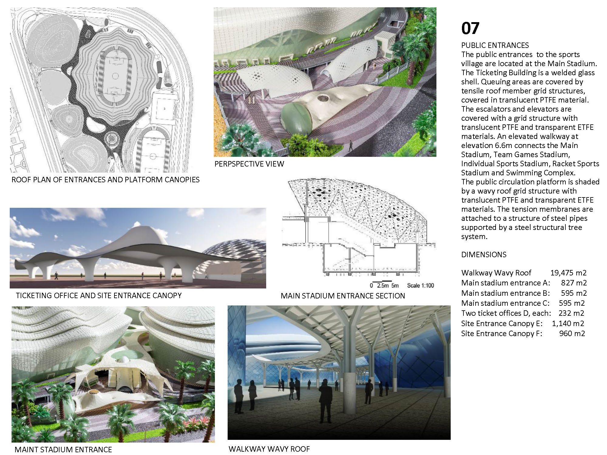 The Kuwait Olympic Village is a self-supporting village that will be an international sporting events center, capable of hosting up to 16 sports for national, regional, and global sporting events. The concept design uses beaches, shells and desert oasis as concepts, which inspires the landscape design. The design integrates function with nature and local culture. The concept is represented by different landscape elements all over the site, such as wavy fence, wavy paving pattern, spiral sculpture, and streamlined planting areas. It is manifest in shell-like appearance of large stadiums, and in the sails-like wavy roofs providing shade. The design also provides a variety of use areas for shopping, recreation, and gathering after game events. The project also includes substantial facilities for media services, police, public observation decks, as well as a public mosque. Among the buildings featured in the village are the following: Main Buildings: • Football Stadium • Olympic Swimming Complex • Team Sports Stadium • Individual Games Stadiums • Athletics Track & Field Stadium • Racquet Games Stadiums Support facilities: • Athletes’ Residences • International Committee Center • Police Station • Public Mosque • Observation Tower with rotating café • Ticket Offices & Village Entrances • Central covered circulation spine